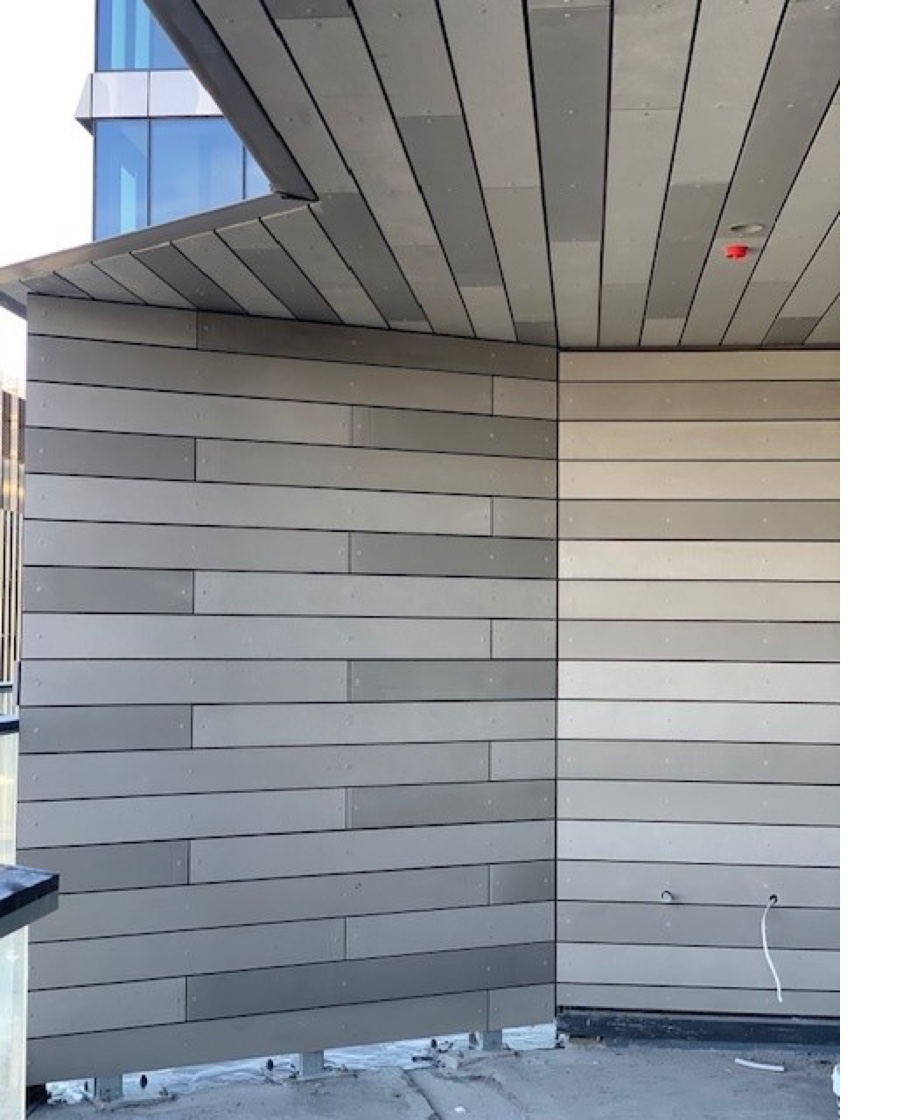 The Rieder Oki Plank has been selected for use on the balcony soffits and dividing walls.