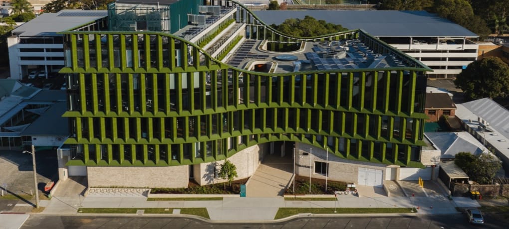 Mayor Tempio was used as the preferred rain screen cladding on the hospital carpark retail wing, the 300×600 module was selected for the scale.