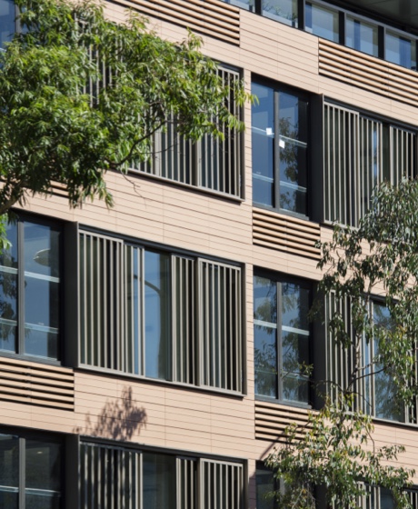 Featuring a series of external shroud-like elements that adapt and change as the facade wraps the building, the design has produced an organic aesthetic that is distinctive to the Biomedical Precinct. Inspired by the natural environment, the design references the movements of a butterfly. The facade utilised a mix of Mayor Tempio bespoke sun shades and standard tile.